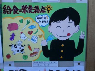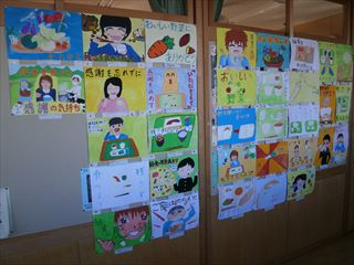 ★「給食週間」に向けて~冬休みの作品が掲示されています。~