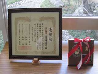 これは、虫歯予防やその治療に成果のあった学校に贈られるものです。生徒と共に、保護者のみなさまのご理解とご協力に感謝いたします。ありがとうございました。