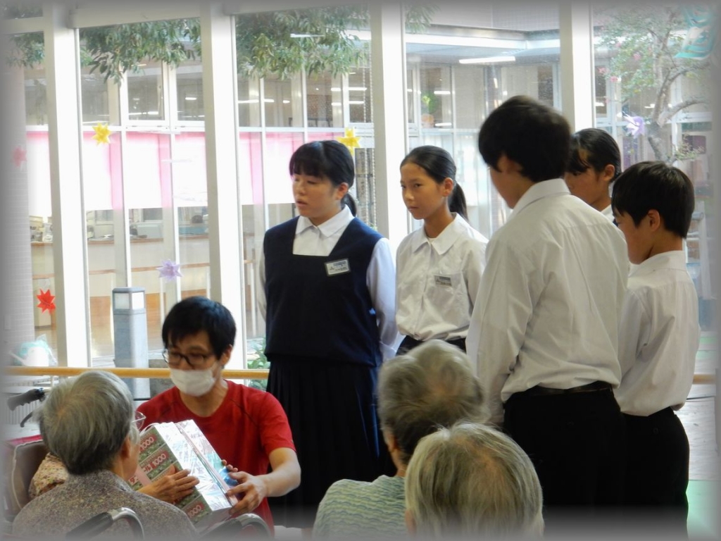 本日放課後、本校の奉仕委員の皆さんが、学区内にある「FOMAなごみ」さんを訪問し、全校で集めたティッシュボックス147個を贈呈しました。FOMAなごみさんからは、後日豊里中学校生徒へ図書(本)をいただけるとのことです。どうもありがとうございました。