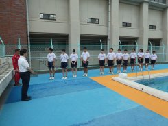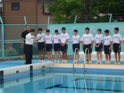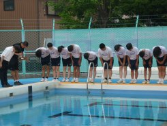 天気は快晴とはいきませんでしたが、今年度のプール開きが体育委員が勢ぞろいして行われました。