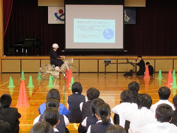 そこで、安全委員会で実演しながら自転車の乗り方を再確認しました。