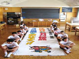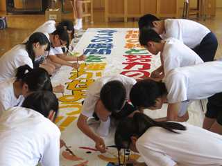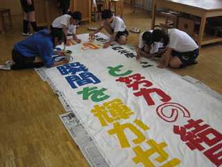 総合文化部のみなさんが、制作していた体育祭用スローガン昇り旗が、完成しました。