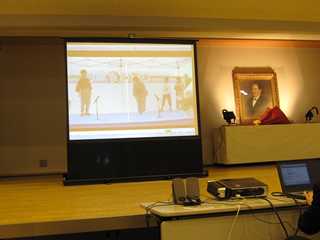 会では、生誕祭式典から始まり、深谷小学校の寸劇DVDの鑑賞、講演会、くすのき太