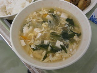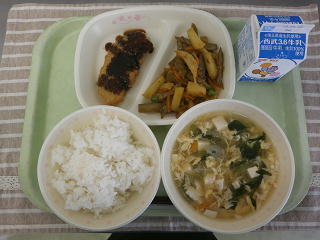 <じゃがいものきんぴら炒め> <かきたま汁>