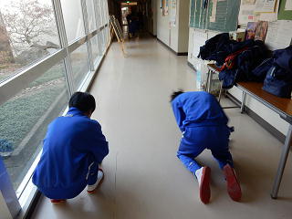 本日は冬休みの清掃日でした。今回の担当は2年2組。職員室や廊下、