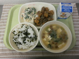 わかめご飯 豚肉と高野豆腐のごまだれ