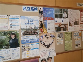 先日、進路講演会・説明会を終えた3年生の廊下には、高校関係のポスターが
