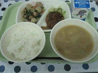 コロッケ 添えキャベツ 野菜椀 牛乳