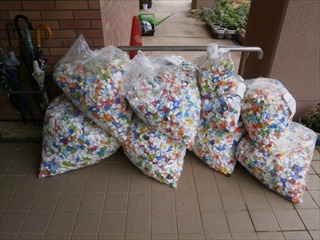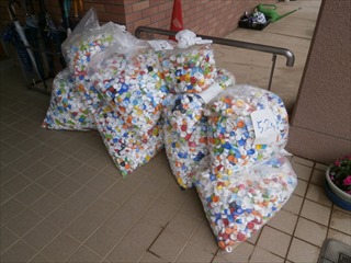 これまで集まっていた「エコキャップ」を業者の方にお渡ししました。