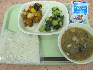 17日(水)の給食 鶏肉とかぼちゃのオレンジソース煮