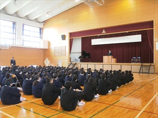 しっかりと使って勉強に励んでください。そして、校歌斉唱がありました。体育館に響く