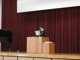 式では、生徒代表の2年生蛭川 さんと3年生 笠原 さんの発表がありました。二人とも