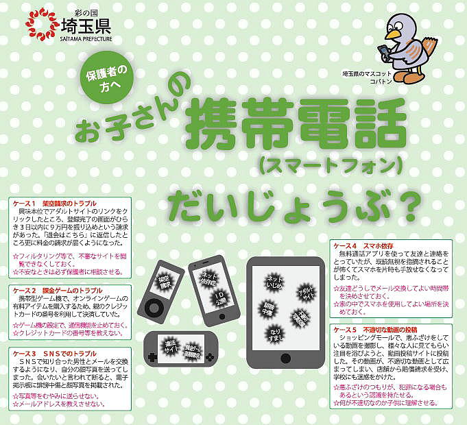 県教育委員会より、「携帯電話利用に係る保護者用啓発リーフレット」について