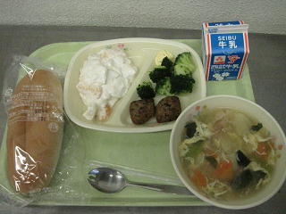クリームサンド つくね ブロッコリー 華風スープ 牛乳