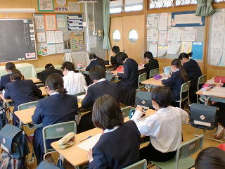 2年生は全国学力テストA問題からの出題でした。1年生は「百人一首」、