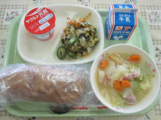 きなこあげパン、ポトフ、ツナとひじきのサラダ、ヨーグルト、牛乳