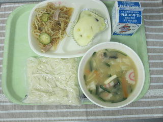 チャンポン麺 カルシウム蒸しパン もやしのナムル 牛乳