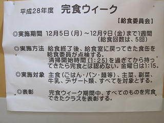 今週は食育の一環で、「完食ウィーク」です。給食委員さんが中心となり、活動を