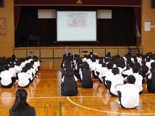 全校生徒が、しっかりとした態度で大澤先生のお話を聞いていました。その後、講演会の感想文を書きました。大澤先生、ありがとうこ゜さ゜いました。
