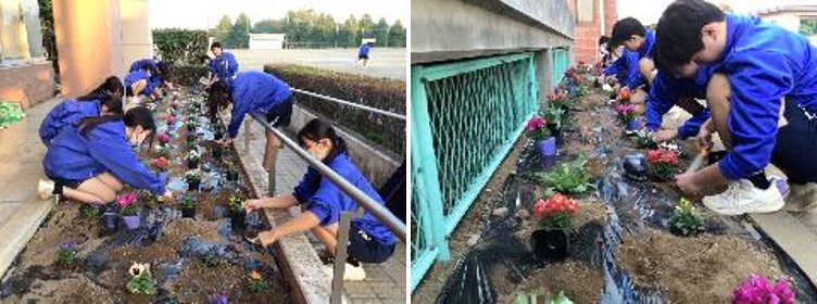 総合文化部の生徒が、花壇に一つ一つ丁寧に植えてくれました。