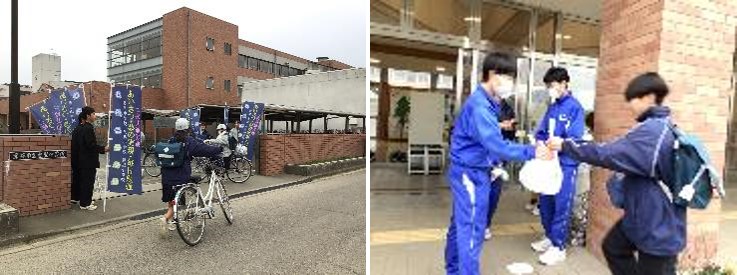 今朝は、あいさつ運動とアルミ缶・エコキャップ回収を行いました。