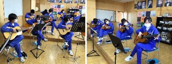 3年生の音楽の授業では、クラシックギターを学んでいます。
