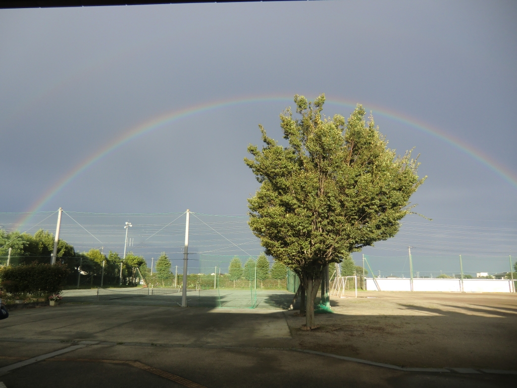 校庭・テニスコートを虹がすっぽりと包まれました。