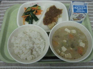 きゅうりと人参の漬け物 けんちん汁 牛乳