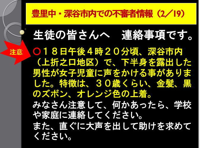 今回の件は、18日に市内上折之口地区での不審者出没についてです。