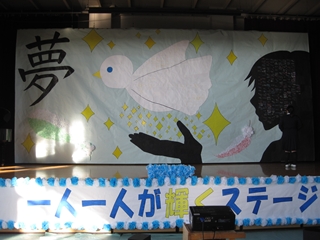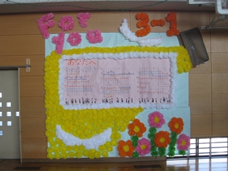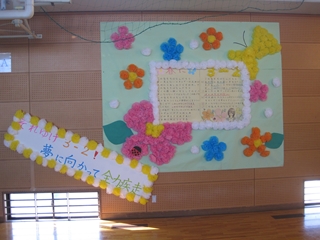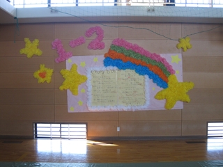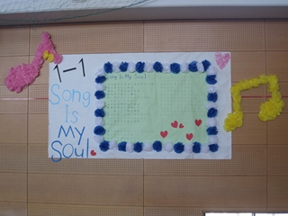 体育館内に掲示した「各クラスの合唱曲紹介装飾」などを紹介します。