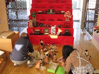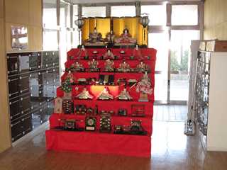 ★雛人形(段飾り)を生徒玄関に飾りました。