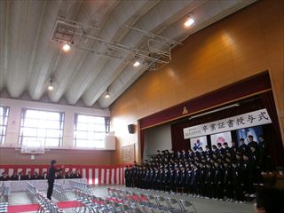 出席いただきました。約2時間弱の式となりましたが、3年生の凛とした姿に、