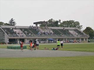 仙元山陸上競技場で行われている大会では、豊里中生もがんばっています。