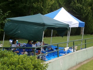暑さの中での大会ですが、生徒も水分補給をしながら出場まで休んでいます。