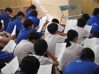 明日の修学旅行と社会体験チャレンジに向けて、各学年の事前指導が行われました。3年生は、体育館でしおりを使っての最終確認でした。各担当の先生方の話をもう一度思い出して、明日の集合時間に遅れないようにしてください。古き良き奈良・京都で、楽しい思い出を作りましょう。