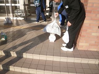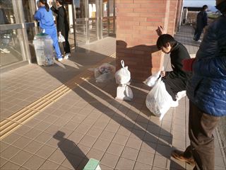 ◆たくさんのアルミ缶・エコキャップありがとうございました。寒風の中でも、元気なあいさつが交わされました。