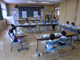 中学校を知ってもらうことを第一として、学校案内と授業参観、そして給食を食べてもらいました。