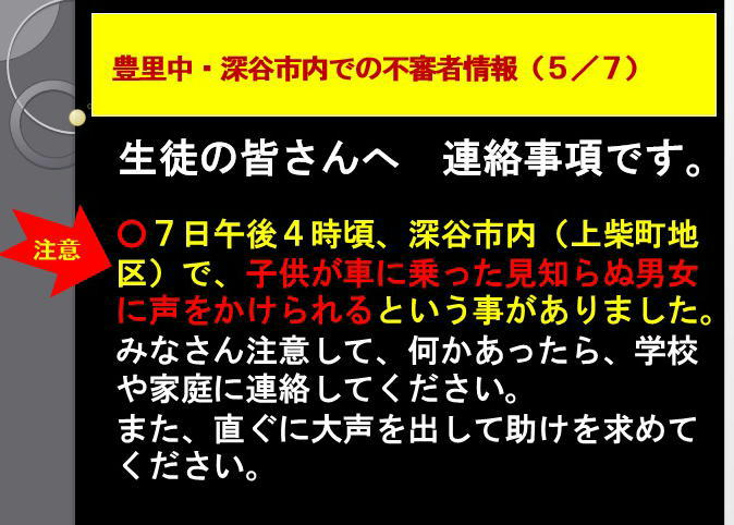 ★7日夕方、市教委より、不審者情報が入りまし