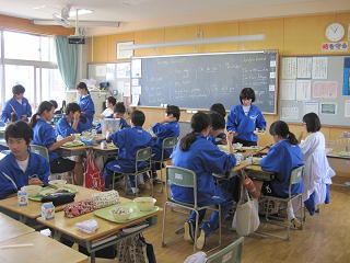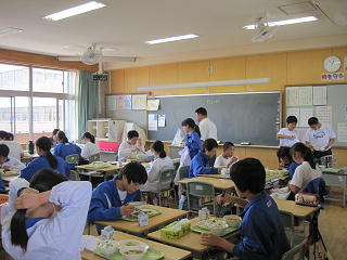 今日は12時55分に2年生のクラスへ行くと、もう食べていました。