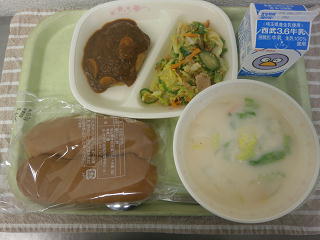 春キャベツのサラダ クラムチャウダー 牛乳