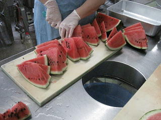 様子でした。大きな大きなすいかを、1/32カットにしました。