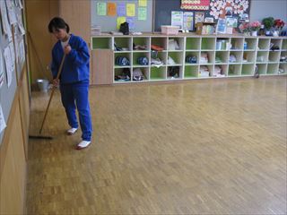 今日は、「ワックスがけ①」として各教室をかけました。明日は、廊下等にワックス
