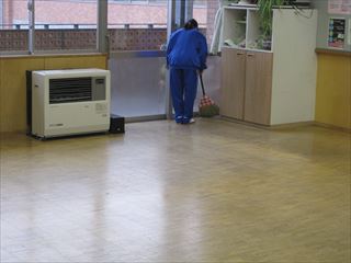 豊里中では、例年、各学期末に教室・特別教室のワックスがけを行っています。