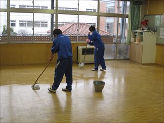 2学期間お世話になった教室等に感謝の気持ちを込めて、美化委員の人たちが、
