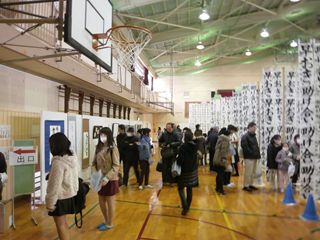 県内から多くの見学の方々が、体育館の作品をじっくり見ていました。