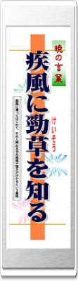 今回は、「疾風に勁草(けいそう=風雪にたえるつよい草)を知る」です。この言葉は、後漢書の王覇伝にあるもので