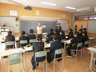 それぞれの教室で、教師からの発問や説明を受けながら、生徒も英語で解答をし