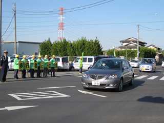 今年は、豊里中からも近い大塚の交差点で行われました。児童生徒、高齢者の方々を交通事