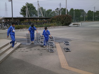 さて、掃除の時間に、生徒玄関の担当の生徒が、傘立てを丁寧に洗って