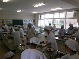 また、この授業では、実習前に食中毒防止のために安全作業の説明や作り方の